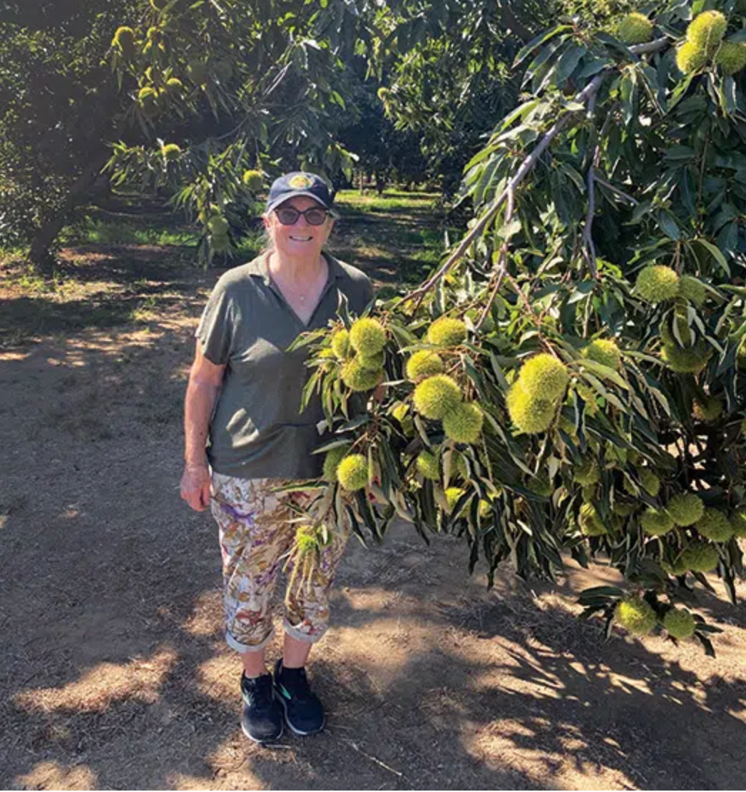 Excerpt from article: Sandy Harrison of Harrison’s California Chestnuts invited me into her oasis of chestnut shade in Gridley, where she cultivates Colossal, Nevada, and Silverleaf chestnuts, all Euro-Japanese hybrids.